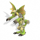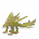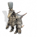 Gran criatura con aspecto de dinosaurio, múltiples, incluso excesivos, cuernos y muy mala leshe