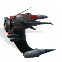 Uno de los actuales Buques de la UGI, armado con cañones de positrones y con unos tubos de flujo de los mismos en sus laterales.