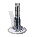Este edificio, representa un cohete en su modulo de lanzamiento